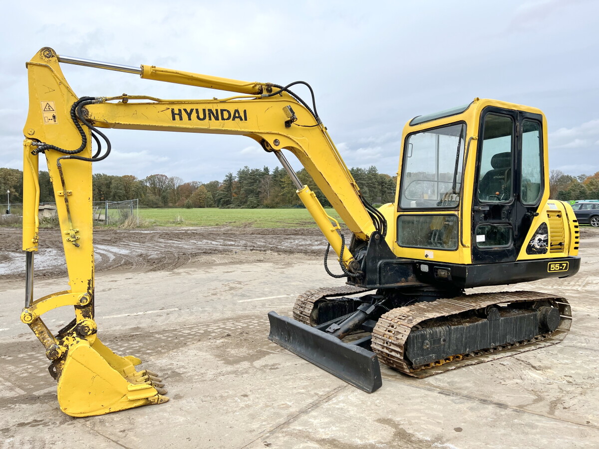 Sprawna koparka gąsienicowa Hyundai 55-7 do robót ziemnych i wykopów instalacyjnych. Regularnie serwisowana, gotowa do pracy. Idealna do wykopów pod fundamenty, przyłącza wod-kan i drenaże. Możliwy transport na miejsce oraz operator na życzenie.